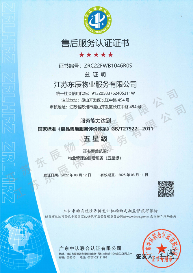 2022-2025年售后服務認證證書